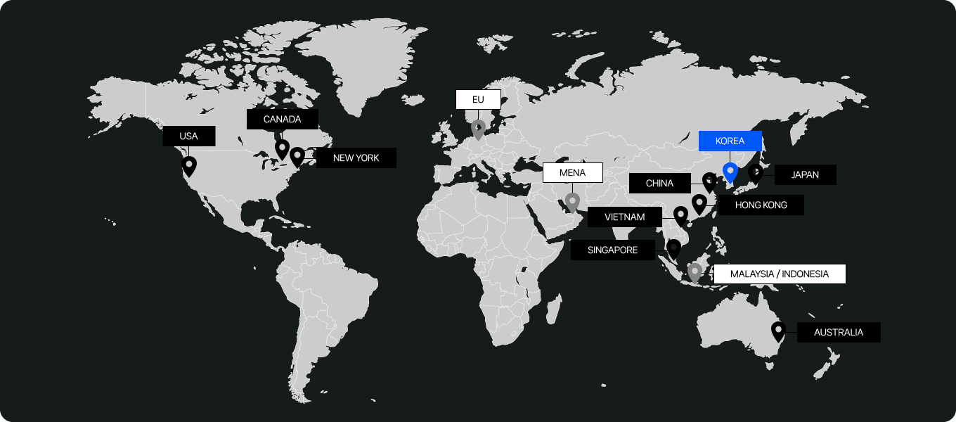 Global Expansion Program은 클라우드·AI 인프라 구축부터 현지 파트너 연계, 커스터마이즈 이벤트와 마케팅까지 아우르는 글로벌 AX 시장 동반 진출 오퍼링입니다. 글로벌 비즈니스 환경에 맞춰 메가존클라우드는 다양한 지역에서 직접 연결 가능한 네트워크를 운영하고 있습니다.